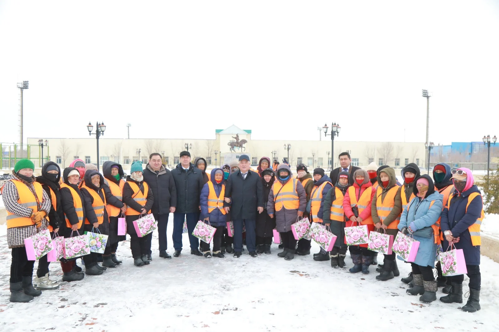 «Күннің ыстығына, суығына қарамай шағын қаламыздың көркейуіне, гүлденуіне қызмет істеп келесіздер. Әрине Сіздердің еңбектеріңіз ерекше. Ыстық көңілден, шын жүректен барша ер азаматтардың атынан Өздеріңізге деген құрметімізді қабыл алыңыздар! Әрдайым жүздеріңізден күлкі кетпей, жадырап-жайнап жүре беріңіздер!» деген аудан әкімі барша жұмысшы әйелдер қауымына сый-сияпат табыстады.
