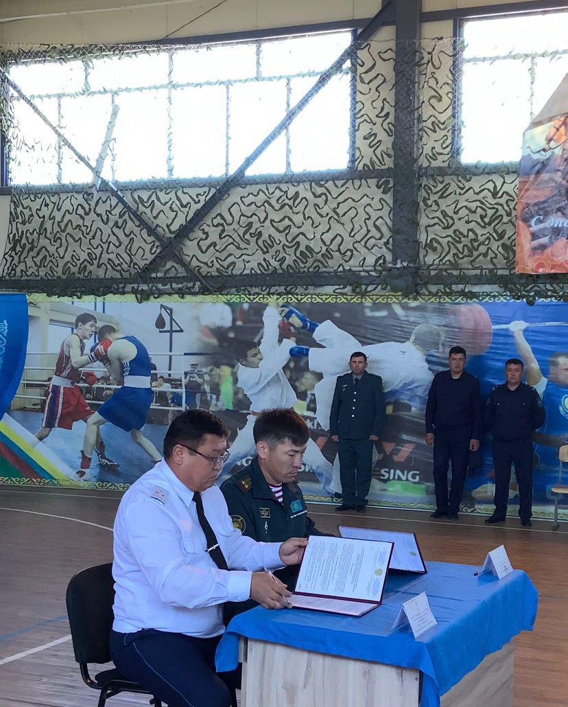 Қызылорда облысы бойынша Қылмыстық атқару жұйесі департаменті мен ҚР Ұлттық ұланы №5547 әскери бөлімінің арасында меморандумға қол қойылды. Келісім қағазында екі жақты спорт кешенін пайдалану жөнініде шарт жасалған. ҚАЖ департаментінің басшысы, әділет полковнигі Ш.Есенкелдиев пен №5547 Әскери бөлімінің командирі, подполковник Ж.Беркеновтің қол қоюымен құжат күшіне енді. Салтанатты шара барысында Ш.Есенкелдиев сөз алды, құжаттың маңызы мен мақсаттарын жіктеді.