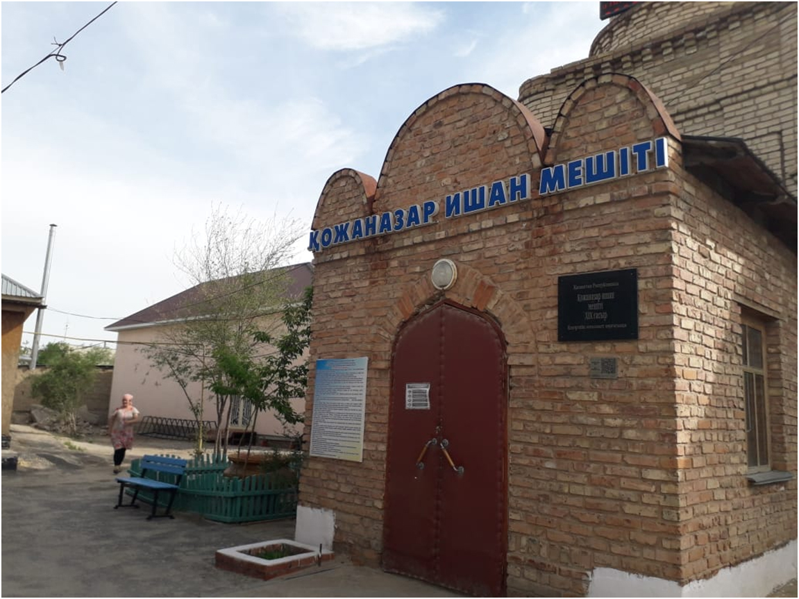 Ишан бейітінен әудем жердегі арада өткен уақыт ағынымен өз ізін қалдырған мешіттің алдына арнайы дайындап әкелген «Осы жерде Қожаназар ишан мешіті орналасқан» деген жазуы бар мәрмәр тақта орнатып, қоршауын құрғанбыз. Ал мешітке таяу маңда Сырдария өзені сарқырап ағып жатты.