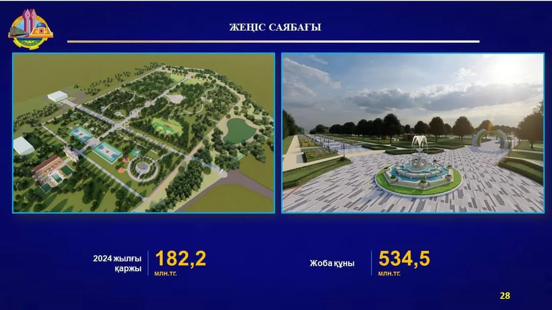 Орталық алаң мен «Жеңіс» саябағын абаттандыру жұмыстары биыл аяқталып, мамыр айында пайдалануға беру жоспарланып отыр.