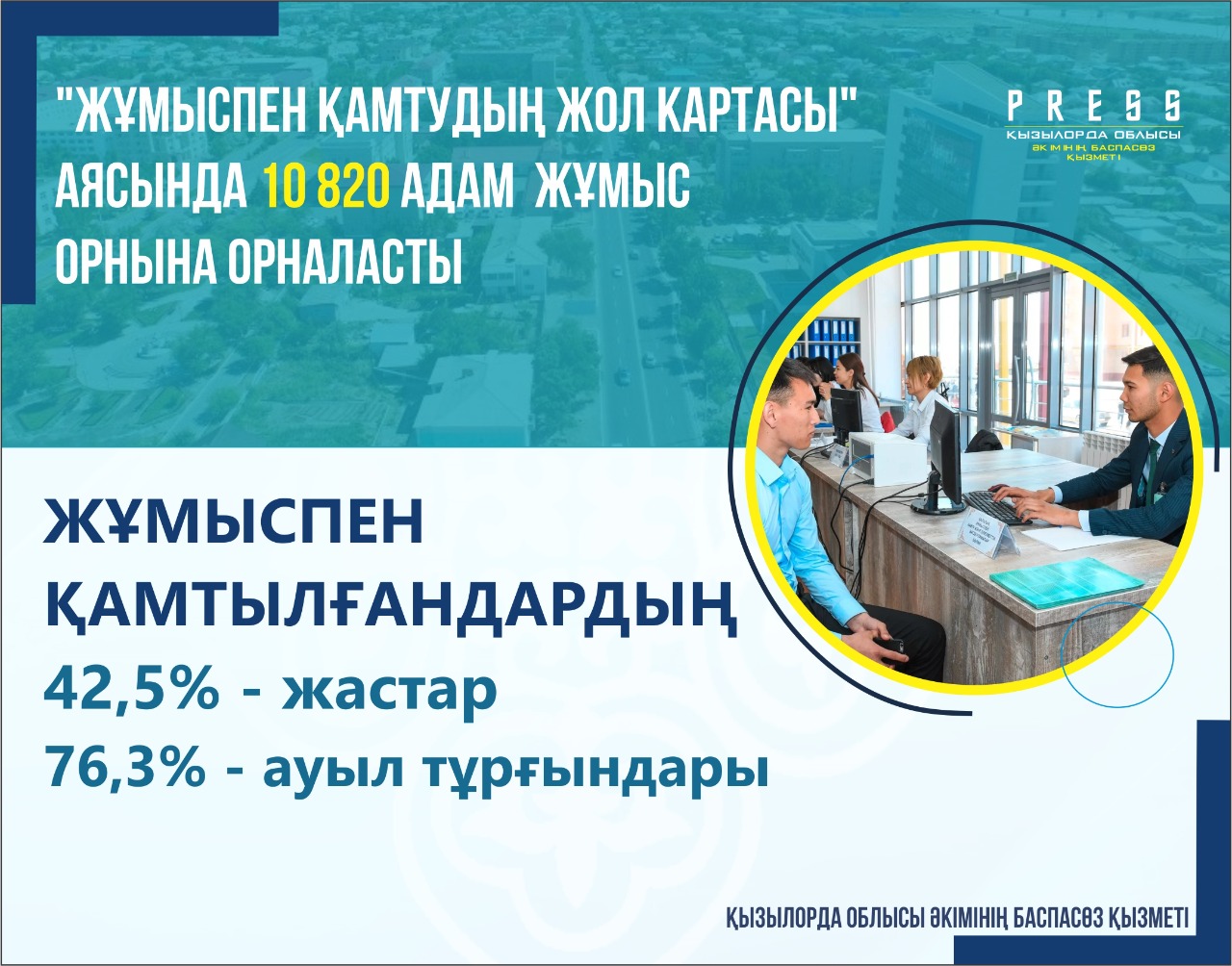 Пандемия шектеулеріне қарамастан өңірде «Жұмыспен қамтудың жол картасы» бағдарламасы арқылы тұрғындарды еңбекпен қамтуға мүмкіндік туды. Бағдарлама шеңберінде өңірде белгіленген меже орындалып, 2020-2021 жылдары 10820 тұрғын уақытша жұмыс көзін тапты.