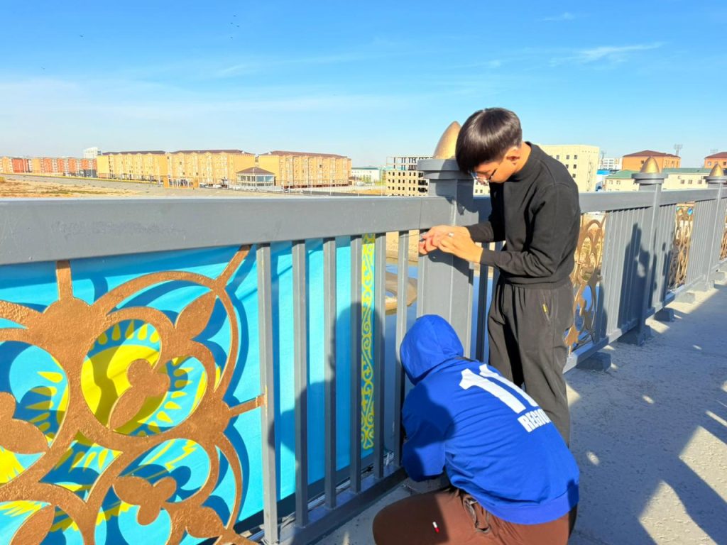 Жыл сайын қаламыздағы ғимараттартарға Ту ілетін жастар биылғы жылы Сол жағалауға өтетін аспалы көпірдің көркін келтірді.