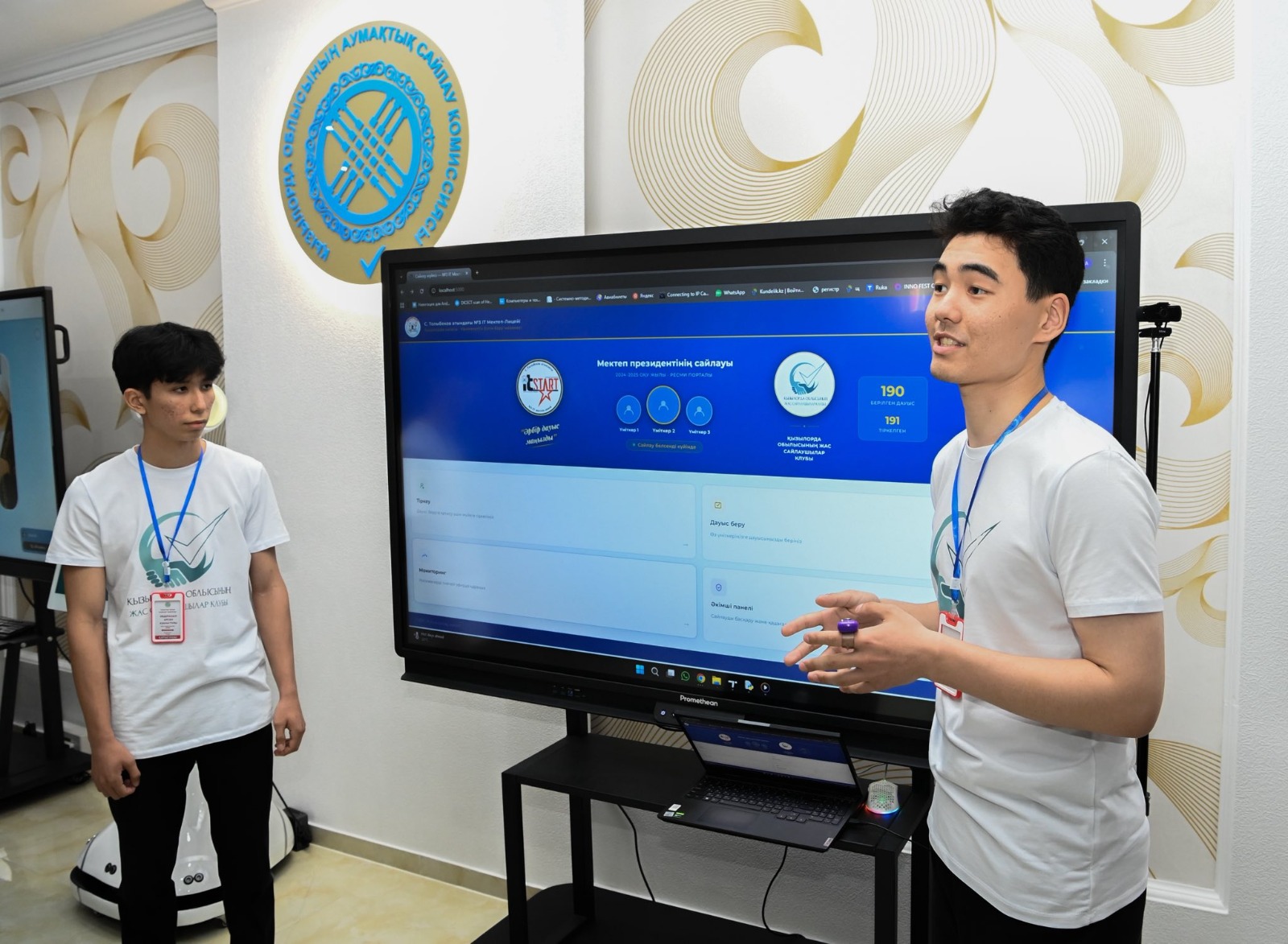 Делегация мүшелеріне сайлаушылар көрмесі таныстырылды. Онда мектеп президентін сайлау кезіндегі онлайн дауыс беру, цифрлық технологиялар мен датчиктер көмегімен әзірленген «ақылды бюллетень» жобасы ұсынылды. Сонымен қатар, 3D графикамен жасалған жұмыстар, сайлау тақырыбына арналған қолөнер бұйымдары қойылған.