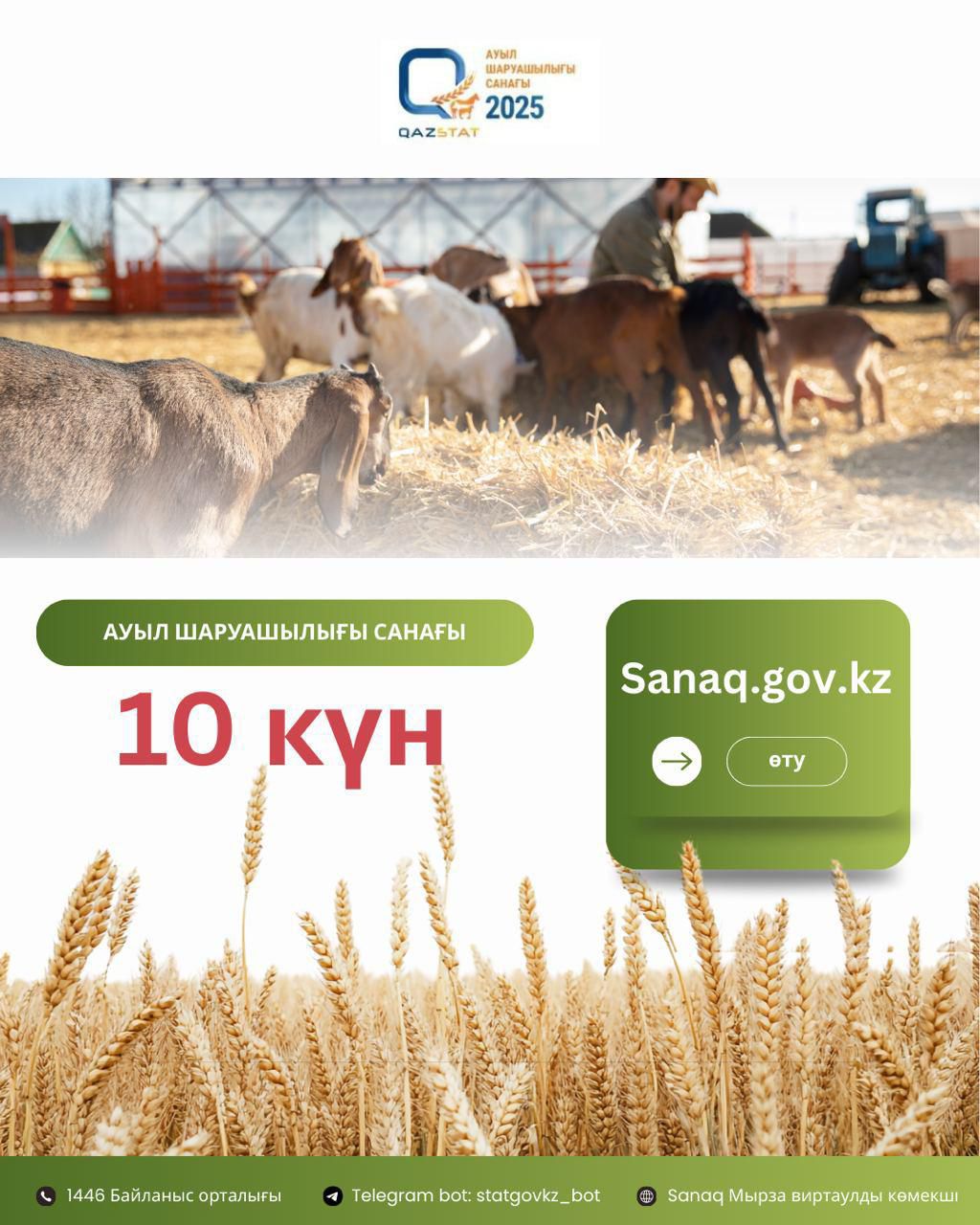 Қазақстан Республикасы Президентінің тапсырмасымен Қазақстан Республикасы Үкіметінің 2023 жылғы 29 желтоқсандағы «Ұлттық ауыл шаруашылығы санағын өткізу туралы» №1248 қаулысы негізінде аймақта Ұлттық ауыл шаруашылығы санағы 2025 жылдың 1 тамызы мен 20 қазаны аралығында өтеді.