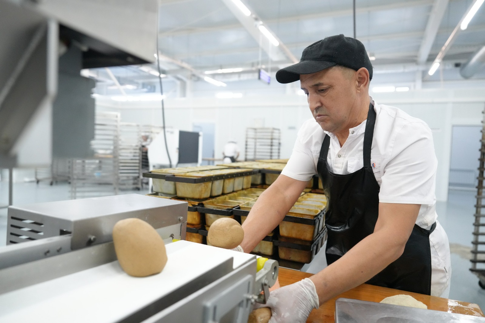 Нан өнімдерін дайындайтын цехта 9 пеш бар. Оның бәрі де – соңғы технология. «Sinmag» деген бренд. Қытайдан әкелінген. Қалған құрал-жабдықтарды Ресейден алдырдық. Мұнда ұнды мөлшермен салу, илеу, қамырды жасап шығару, оны ашыту, көтеру сынды жұмыстың бәрін де техника атқарады. Қанша көлемде су, ұн және өзге де қоспа қосылу керектігі бойынша бағдарлама беріледі. Автоматты құрылғыны тек басқару керек. Дайын қамыр қалыптарға түскеннен кейін ол белгілі уақытқа дейін толықсыту шкафтарына салынады. Содан кейін ғана пеште пісіреді. Қазір наубайханада 50 адам жұмыс істейді. Жұмыс үздіксіз, екі ауысым бойынша жүреді, – деді ол.