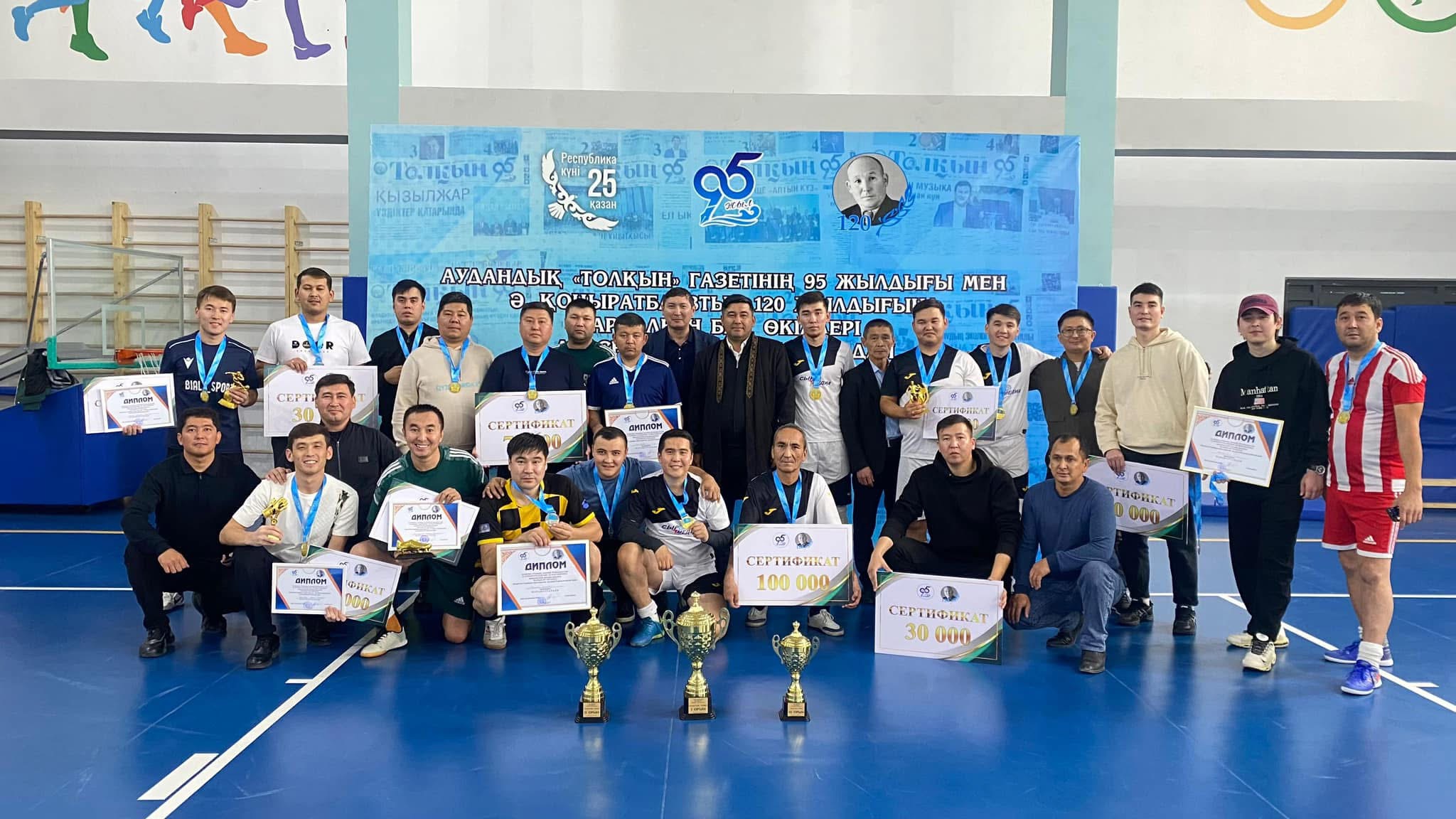 Биыл аудандық «Толқын» газетінің 95 жылдығы мен ұлт әдебиетінің алыбы, ғалым Әуелбек Қоңыратбаевтың 120 жылдық мерейтойы аталып өтуде. Бүгін аталмыш мерейтой аясында бұқаралық ақпарат құралдары өкілдері арасында шағын футболдан облыстық турнир өтті.