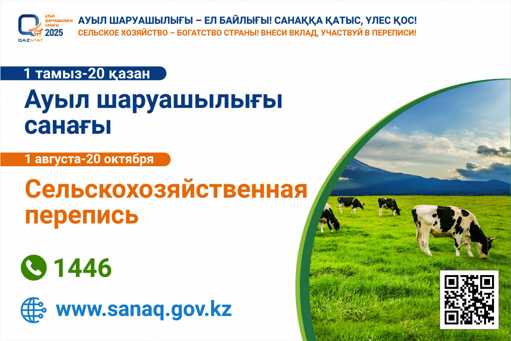 – Интервьюер ретінде санаққа қатысқысы келетін азаматтар 1446 байланыс орталығына немесе @statgovkz_bot Telegram-ботына өтініш қалдыра алады. Санақ барысында жинақталған мәліметтер ҚР «Мемлекеттік статистика туралы» Заңының 21-бабына сәйкес, бастапқы статистикалық деректерге жатады және міндетті түрде өтеусіз негізде ұсынылады. Аталған заңның 8-бабы 1-тармағында «Алғашқы статистикалық деректер құпия болып табылады және осы баптың 4-тармағында көрсетілген мәліметтерді қоспағанда, оны мемлекеттік статистика органдары тек қана статистикалық ақпаратты түзу мақсатында пайдаланады. Мемлекеттік статистика органдары алғашқы статистикалық деректерді жинау, өңдеу және сақтау кезінде осы деректердің құпиялылығын қамтамасыз етеді» деп көрсетілген. Сондықтан әрбір ақпарат заңмен қорғалады, мемлекеттік кіріс органдарына және өзге де органдарға берілмейді. Біз азаматтарды санаққа саналы түрде қатысуға шақырамыз. Өйткені бұл – жай статистикалық емес, барлық азаматтарды қамтитын мемлекеттік маңызы бар ауқымды шара. Барлық ауыл шаруашылығы саласымен айналысатын құрылымдарды, шаруа-фермер қожалықтары мен дара кәсіпкерлерді ауыл шаруашылығы санағына белсенді қатысуды сұраймыз, – деді департамент басшысының орынбасары.