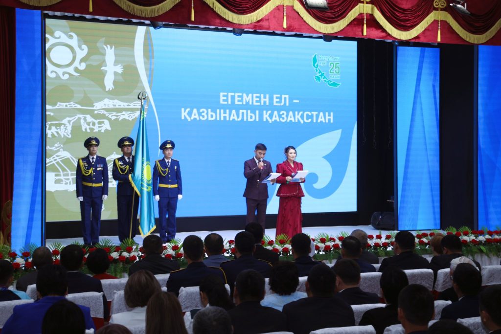 Мерекелік кеш мағыналы әрі мазмұнды концерттік бағдарламаға ұласты. Шежірелі тарихымыздан сыр шертер әсем ән әуелеп, арнау айтылып, ұлттық аспаптардан күй күмбірлеп, патриоттық бағыттағы туындылар шырқалды.