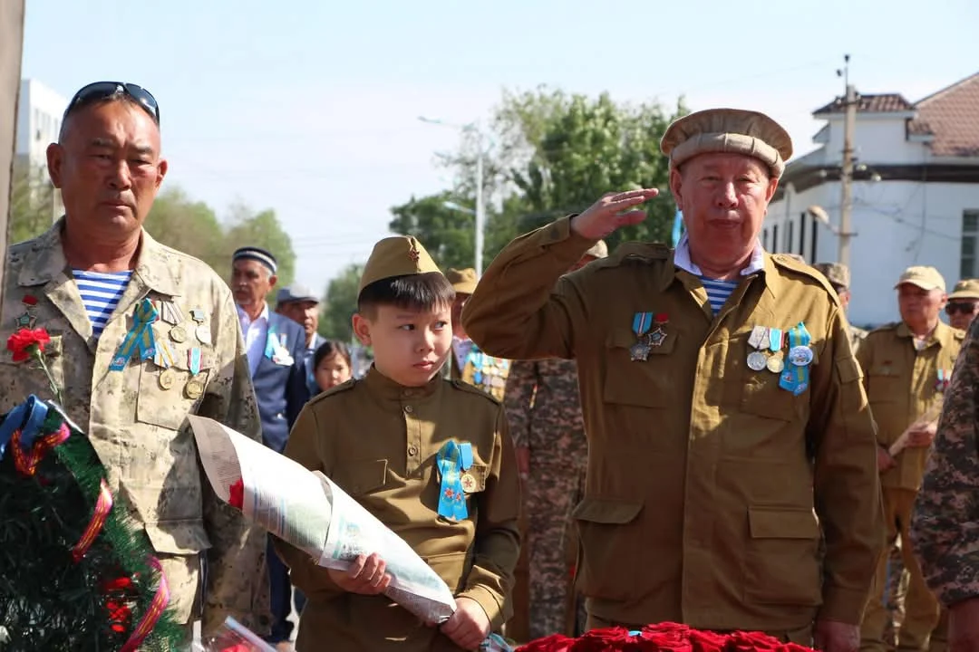 Салтанатты шарада сұрапыл соғыс жылдары ерлік көрсеткен қаhармандар құрметіне бір минут үнсіздік жарияланып, ескерткішке гүл шоқтары қойылды. Жеңіс туы желбірегелі 80 жыл өтсе де, қасық қаны қалғанша күресіп, кейінгіге бейбіт өмір сыйлаған боздақтардың, хабар-ошарсыз кеткендердің, елге оралған соң еңбек майданында шыңдалған ардагерлердің ерлігі ұмытылмайды.