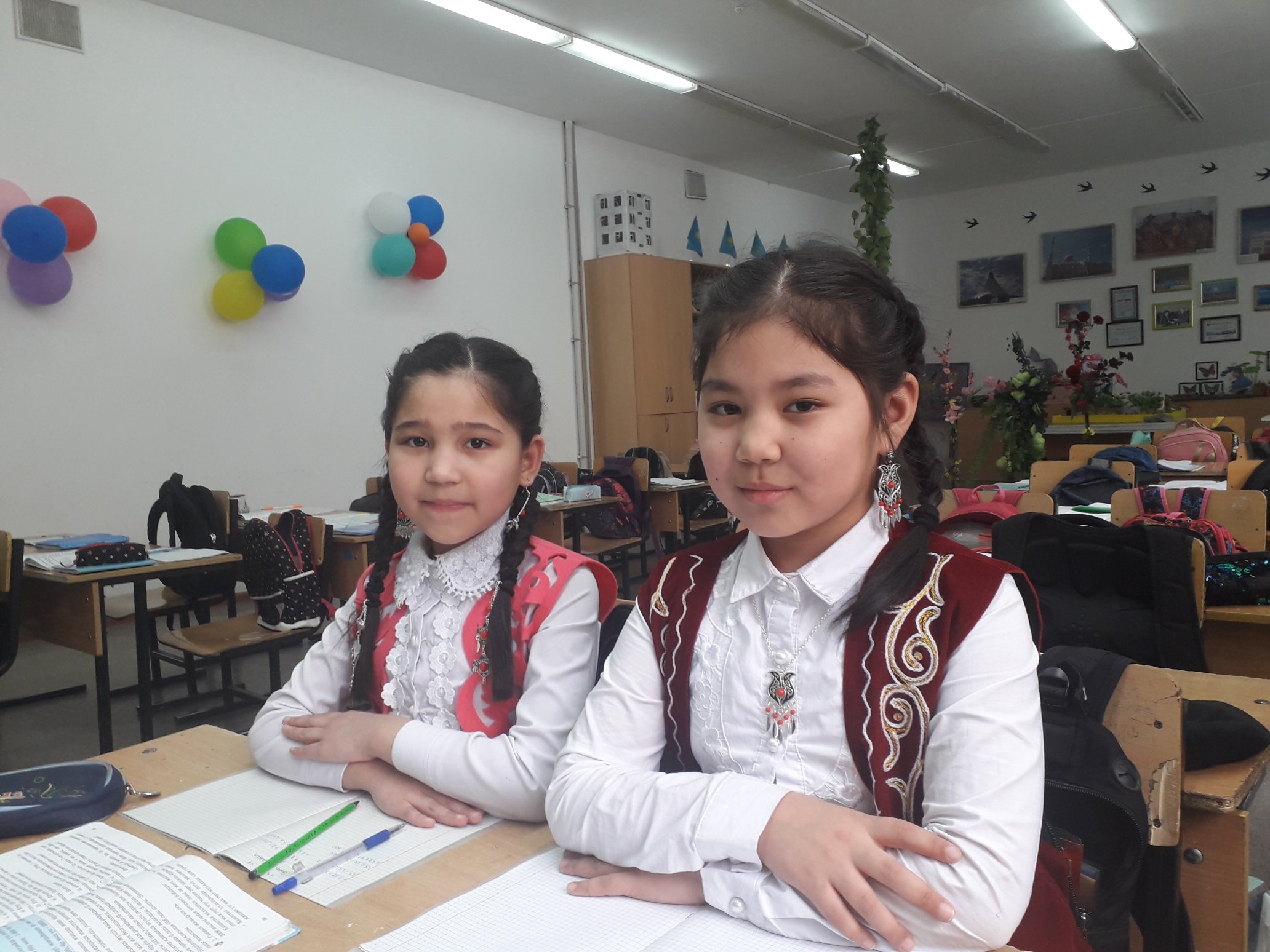 Біз тілдескен Жанерке Ұзақбай мен Ақжүніс Үсенәлі осындағы бастауыш сыныптың 3-сынып оқушылары. Ұлттық киімді бірінші болып кигенін аса бір мақтанышпен айтқан олар Наурыз мерекесінде ұлттық тағам түрлерін жасап үйренбекші екен.
