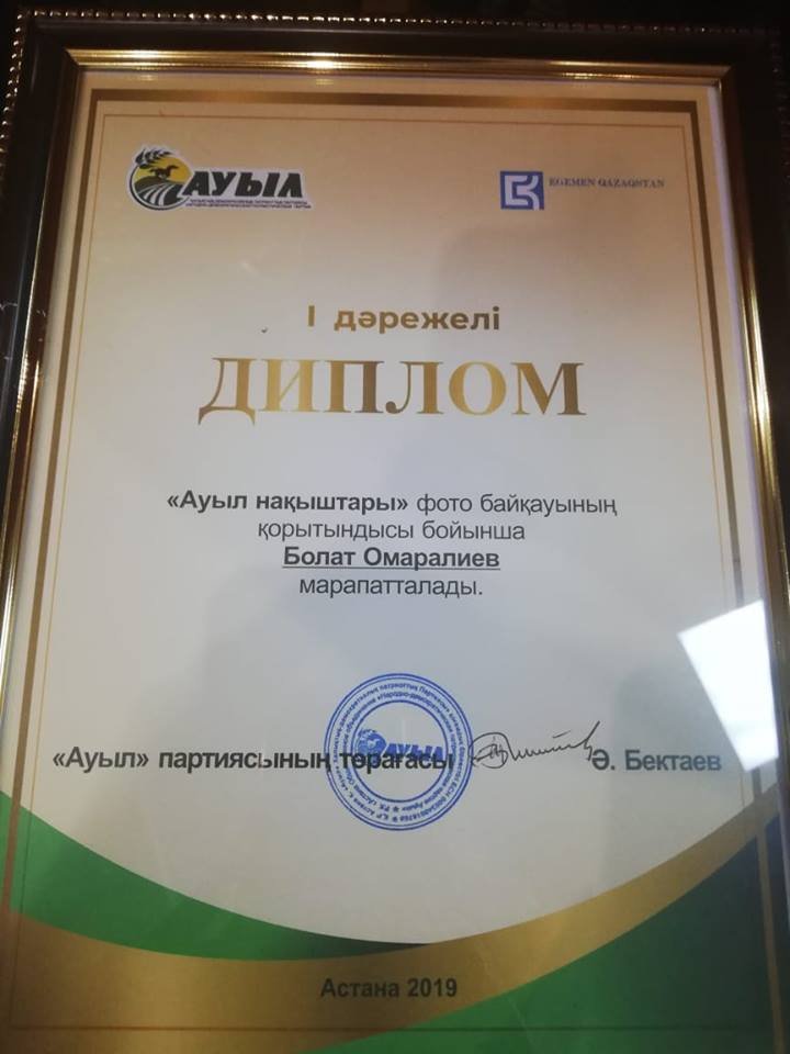 Бұл жолы «Сыр бойы» газеті ардагерінің осыдан 44 жыл бұрын түсірген, еш жерде жарияланбаған суреті «Ауыл» Халықтық Демократиялық Патриоттық партиясы ұйымдастырған республикалық «Ауыл нақыштары» фотоконкурсының жүлдесін қанжығасына байлапты. Елордада аталған партияның төрағасы Ә.Бектаев жүлдені ардагер Б.Омарәлиев ағамыздың қызына табыс еткен. Қуанышты бөліссең, көбейеді. Бәріміздің мәртебемізді өсіреген сүйінші хабарды елге жеткізуге асықтық.