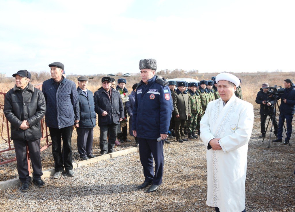 Одан соң Төтенше жағдайлар департаментінің қызметкерлері мен қаза болғандардың туыстары Жалағаш ауданында орналасқан «Ұрпаққа үлгі есімдер» мемориалдық тақтасына гүл шоқтарын қойды.