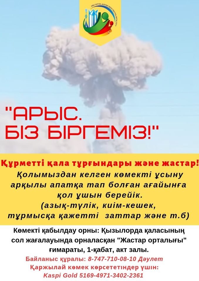 Сол жағалауда орналасқан «Жастар орталығы» КММ-не Арыстағы апатқа тап болған ағайынға арналған көмек толассыз келіп жатыр. «Қайғыны бөліссең азаяды» деген бар. Жоғарыда аталған мекенжай бойынша сіз де келіп, көмек қолын соза аласыз!