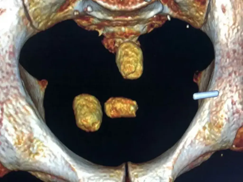 Рентгеноскопиялық зерттеу олардың іш қуысында бөгде заттың барын көрсетті. Арнайы медициналық процедура арқылы шетелдіктердің азқазанынан героин және синтетикалық есірткі бар 30-дан астам контейнер алынды. Алынған заттың жалпы салмағы шамамен 1 кг болды.