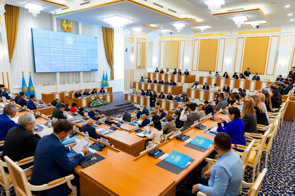«Бейбітшілік пен құқыққа негізделген болашақ» атты конституциялық сот төрелігінің халықаралық форумына Еуропаның, Азия мен Африканың 15 елінен келген конституциялық бақылау органдарының төрағалары мен судьялары, адам құқықтары жөніндегі уәкілдер, жетекші заңгер-ғалымдар мен құқық қорғаушылар, халықаралық ұйымдардың өкілдері, сондай-ақ Қазақстанның орталық мемлекеттік органдарының басшылары, адвокатура мен ғылыми қоғамдастық өкілдері жиналды.