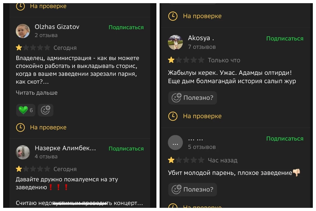 “Клуба 18 жастағы жігіт көз жұмды, ал олардың парақшалары stories жариялап отыр. 2GIS платформасында қызметкерлердің өздері жағымды пікірлер жазып, жағымсыз пікірлерді төменге түсіруге тырысып жатыр”, – деп жазды желі қолданушылары.