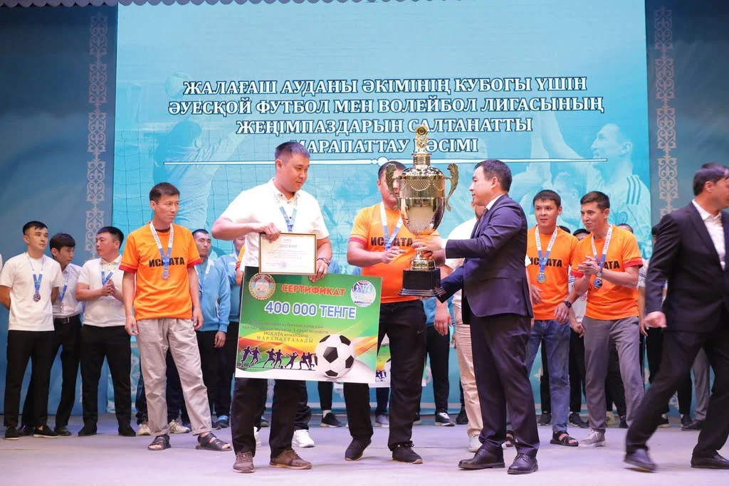 Қ.Қазантаев атындағы аудандық мәдениет үйінде аудан әкімінің кубогы үшін ұйымдастырылған әуесқой футбол мен волейбол лигасының жеңімпаздарын салтанатты марапаттау рәсімі өтті.