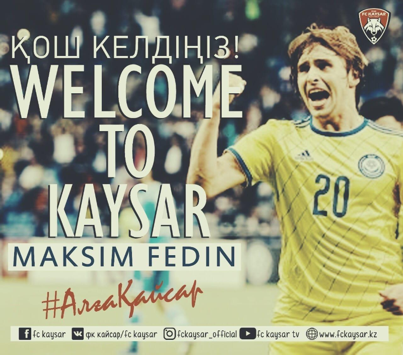 Қазақстан ұлттық құрамасының ойыншысы Максим Федин Қызылорда футбол клубы қатарын толықтырды, деп хабарлайды ҚазАқпарат. «Қайсар» футбол клубы баспасөз қызметінің мәліметінше, Павлодар футбол мектебінің түлегі бұған дейін 5 клубтың намысын қорғаған. Атап айтсақ, «Бәйтерек», «Спартак Суботица», «Атырау», «Оқжетпес», «Тобыл» сапында өнер көрсетті. Максим 2018 жылдан бастап Қазақстан құрамасына үздіксіз шақырту алып жүр.