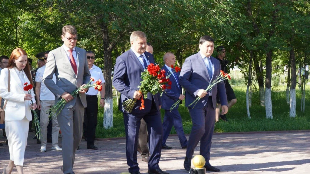 Мерейтой аясында майдангерлерге, интернационалист жауынгерлерге және Байқоңырдың дамуына үлес қосқан ардагерлерге тағзым ретінде ескерткіштерге гүл шоқтары қойылды.