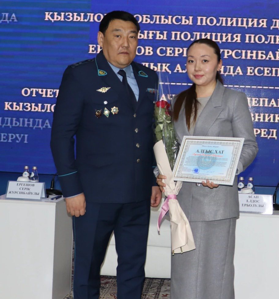 Полиция департаментінің бастығы полиция полковнигі Серік Ергешов азаматтық ұстанымы үшін, сондай – ақ олардың қоғамға қосқан үлесін жоғары бағалап, ынтымақтастық үшін алғыс білдірді.