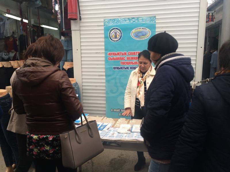 Облыстық ішкі саясат басқармасының «Тұрғындардың құқықтық сауаттылығын арттыруға байланысты ақпараттық насихаттық шаралар ұйымдастыру» әлеуметтік жобасы аясында «Туған жер» қоғамдық қозғалысы» Қауымдастығы адам көп шоғырланатын орындарда тұрғындарға кеңес беру жұмысын ай сайын ұйымдастырып келеді. Бұл жолғы кеңес беру «Сыбаға» базарында ұйымдастырылды.Кеңес беру барысында Жергілікті полиция қызметінің учаскелік полиция инспекторы Досбол Шамаханов азаматтарға қоғамдық тәртіп, бұзақылық, тұрмыстық зорлық-зомбылық құқықбұзушылықтары үшін заң аясында берілетін жазалар мен конституциялық құқықтарын сақтау мәселесін егжей-тегжейлі айтып берді, әйелдерге қысымға ұшыраған сәтте қайда хабарласып, қандай құқықтарын талап етулері тиіс екенін түсіндірді. Құқық бұзушылар тарапынан қысымға ұшырағанда 102 телефонына қоңырау шалып, полиция нарядын шақыру туралы кеңес берді. Қоғамдық тәртіпті бұзғандығы, қоғамдық орындарды ластағандығы үшін әкімшілік кодекстің қандай баптары бойынша жазаға тартылатыны туралы ақпарат та келтірді. Сонымен қатар кеңес беру барысында тұрғындардың құқық саласына қатысты көптеген мазалап жүрген сұрақтарына сәйкесінше тиісті жауаптары қарапайым тілде түсіндіріліп қана қоймай, құқықтық сауаттылықты арттыруға арналған әдістемелік құралдар таратылды.
