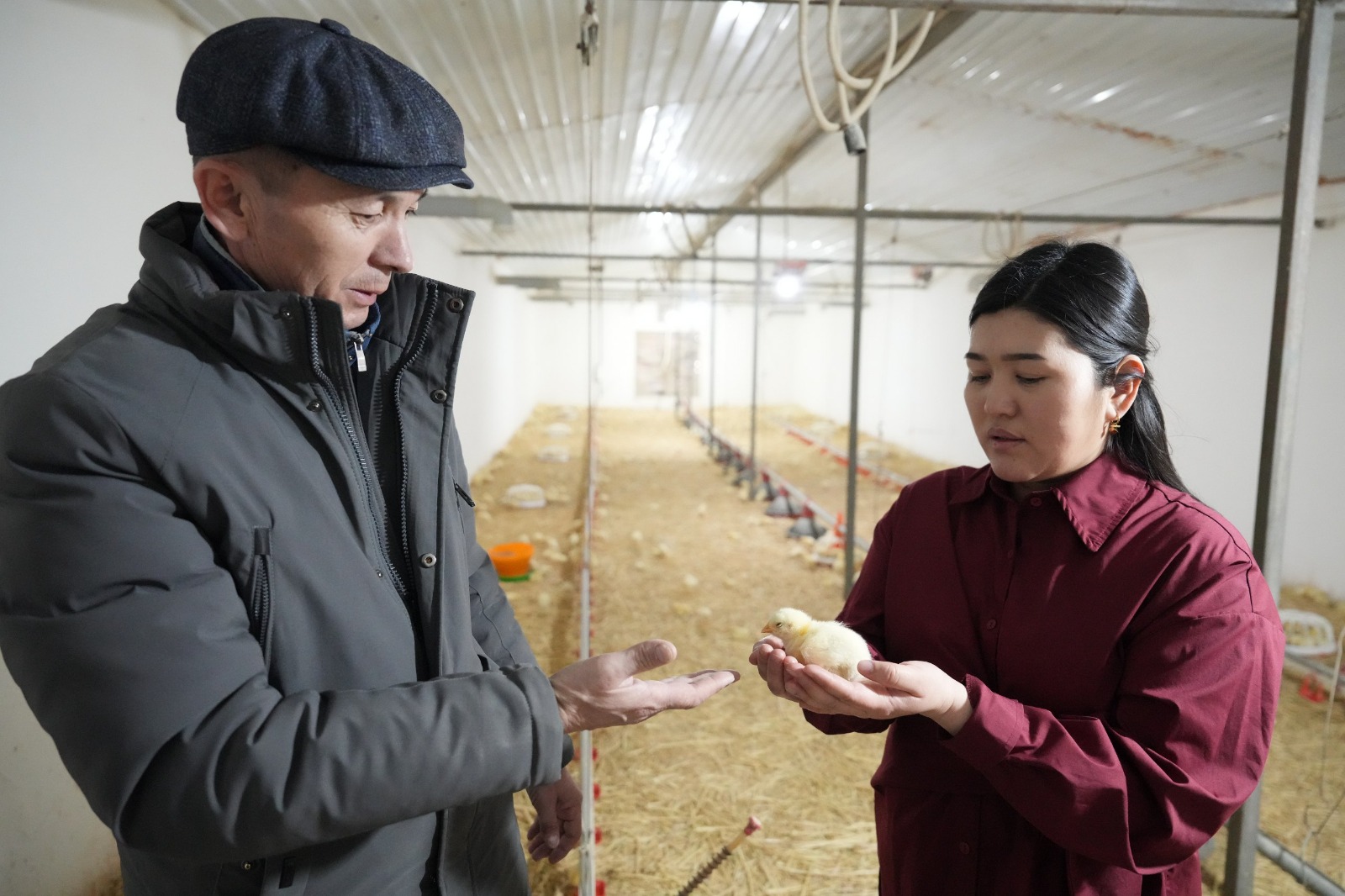 – Мынау үш күндік инкубациядан шыққан балапан. Ет бағытындағы тұқым. Олар елу күннен кейін сойылып, сауда сөрелеріне жіберіледі. Арнайы сою алаңы бар. Сонда дайын өнімге айналып, қапталады. Келісін 1500 теңгеден өткіземіз. Жем-суы автоматтандырылған техника арқылы беріледі. Жемі өзіміздің зауыттан шығады. Оның құрамында бидай, арпа, күріш, жүгері бар. Екі бройлер қорада 20 күндік тауықтың 3200 басы бар. Жалпы, балапанды өсіру де оңай емес. Өте нәзік әрі сезімтал болады. Бөлме жылуын, жем-суын уақытылы беріп, дәрумендер мен қажетті вакцинасын салып отырамыз, – дейді Ербол Асанұлы.