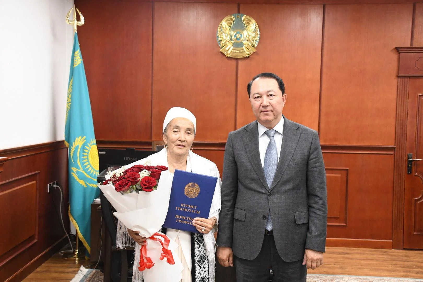 Аудан әкімі Мейрамбек Шермағанбет Қазалы ауданының Құрметті азаматы, білім саласының ардагері Құралай Бекжанованы қабылдап, 75 жасқа толған мерейтойымен құттықтады.