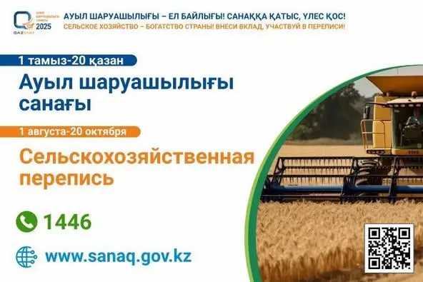 Ауыл шаруашылығы санағы 2025 жылғы 1 тамыздан 31 тамызға дейін 30 күн ішінде арнайы веб-порталда өзін-өзі толтыру әдісімен;