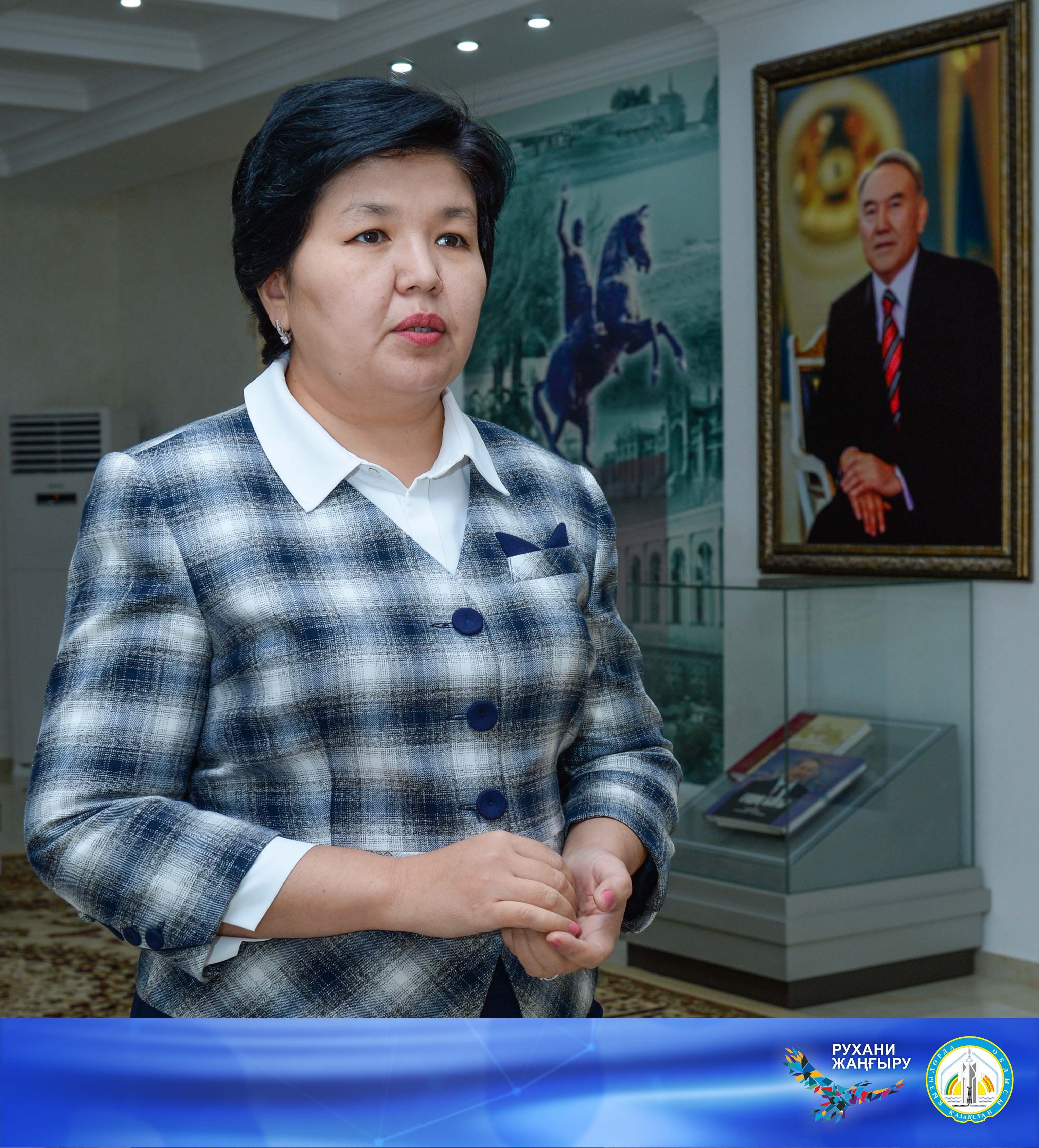 Елбасы Н.Ә.Назарбаевтың «Ұлы даланың жеті қыры» мақаласы «Рухани жаңғыру» бағдарламасын жаңа мазмұн мен жаңа бағытпен толықтырды. Қоғамдық сананы жаңғыртуда ұлттық кодты негізге алуымыз қажет. Бұл орайда Елбасы мақаласы Дала өркениетінің өр рухын қайта тірілткендей әсер қалдырды. «Рухани жаңғыру» бағдарламасын жүзеге асыруда ұлттық құндылықтарды дәріптеу, жастарға патриоттық тәрбие беру, елге қызмет ету бағыттарында түрлі байқаулар, кездесулер өткізіп келеміз. Мұндай шараларға көпшілік аса қызығушылықпен қатысады.«Ұлы даланың жеті қыры: атқа міну мәдениеті, ежелгі металлургия, аң стилі, Алтын адам, түркі әлемінің бесігі, Ұлы Жібек жолы, Қазақстан – алма мен қызғалдақтың Отаны» деп нақтылап көрсетуінде үлкен мән бар. Ұлттық рухты оятатын Елбасы мақаласын көпшілік ерекше ықыласпен қабылдайды деген ойдамын. Өйткені мақалада ел болашағының іргелі негіздері сөз етіледі.