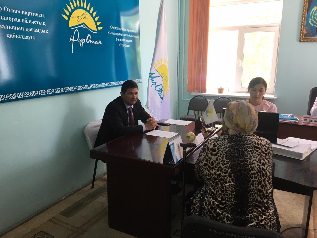 ҚР Мемлекеттік қызмет істері және сыбайлас жемқорлыққа қарсы іс-қимыл агенттігінің Қызылорда облысы бойынша департаментінің басшысы Мұхимов Абзал Сансызбайұлы «Нұр Отан» партиясы Қызылорда облыстық филиалының ғимаратында қоғамдық қабылдау жүргізді.