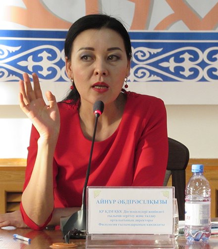 Жасыратыны жоқ, дін тақырыбына дендеп еніп, сауатты талдау жасайтын мамандар саусақпен санарлық десек, қателеспейтін шығармыз. Осы орайда ҚР ҚДМ ҚКК Дін мәселелері жөніндегі ғылыми-зерттеу және талдау орталығының директоры, филология ғылымдарының кандидаты Айнұр Әбдірәсілқызының «Қазіргі Қазақстан қоғамындағы әйел мәртебесі» тақырыбында жасаған баяндамасы көптің көкейіндегі көптеген сауалға жауап болған сынды. Елімізде деструктивті діни ағымдардың алдын алу бағытында жүргізіліп жатқан жұмыстарды көптің назарына ұсынып, күрделі түйіндерді тарқата түсіндірді. Сондай-ақ, жоғарыда аталған орталықтың бастамасымен Қорқыт ата атындағы ҚМУ жанынан құрылған «Қыз Жібек» қыздар клубының жұмысына жақсы баға берді.