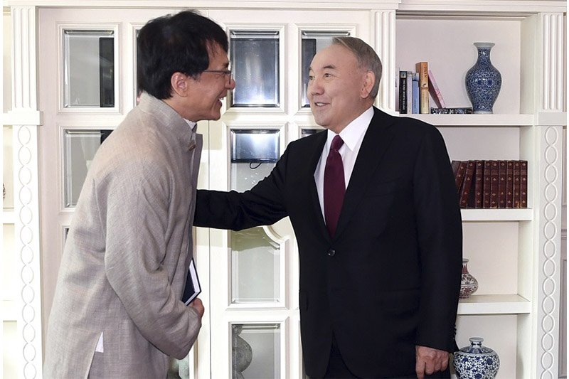 «Елбасы танымал қытайлық актер Джеки Чанмен кезді», – деп жазды А.Үкібай. Әңгімелесу барысында Нұрсұлтан Назарбаев актердің әлемдік кинематографиядағы маңызды рөлін атап өтті.