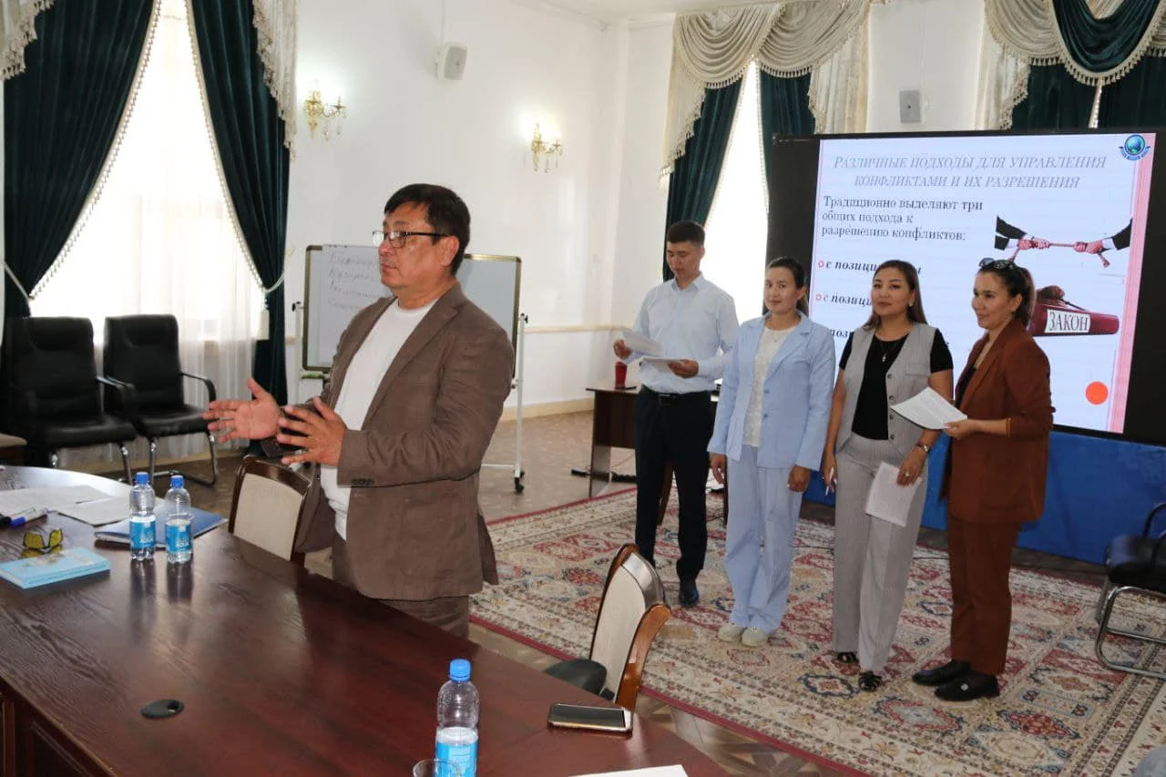 Ал теориялық және практикалық бөлім «Этномедиаторлардың дау-жанжалды реттеу және шешу бойынша медиативтік құзыреттілігі» тақырыбына арналды. Бұл сессияда тараптардың мүдделері мен қарсылықтарымен жұмыс істеу, қайшылықтар аймағын анықтап, түйісу нүктелерін табу, сондай-ақ тараптардың ұстанымдары мен қағидаларын нақтылау тәсілдері қарастырылды. Іскерлік ойын форматында ұйымдастырылған тәжірибелік тапсырмалар қатысушылардың нақты жағдайларда әрекет ету шеберлігін арттыруға бағытталды.
