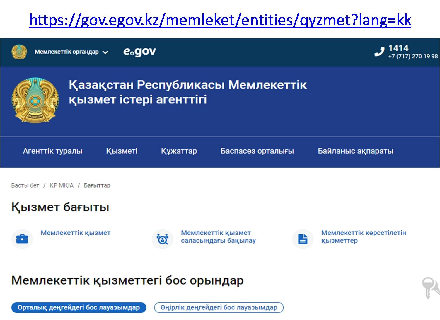 Мемлекеттік қызметтегі бос лауазымдарға өту сілтемесі төмендегідей: