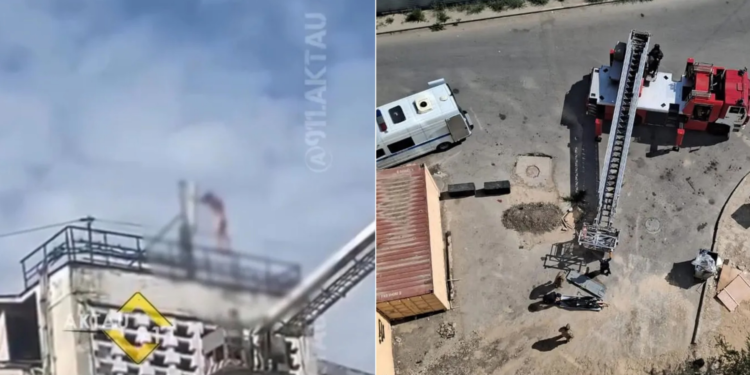 Бейнежазбада ер адамның үйдің шатырына шыққаны және құтқарушылардың оған көмек көрсетуге тырысқаны көрінеді.