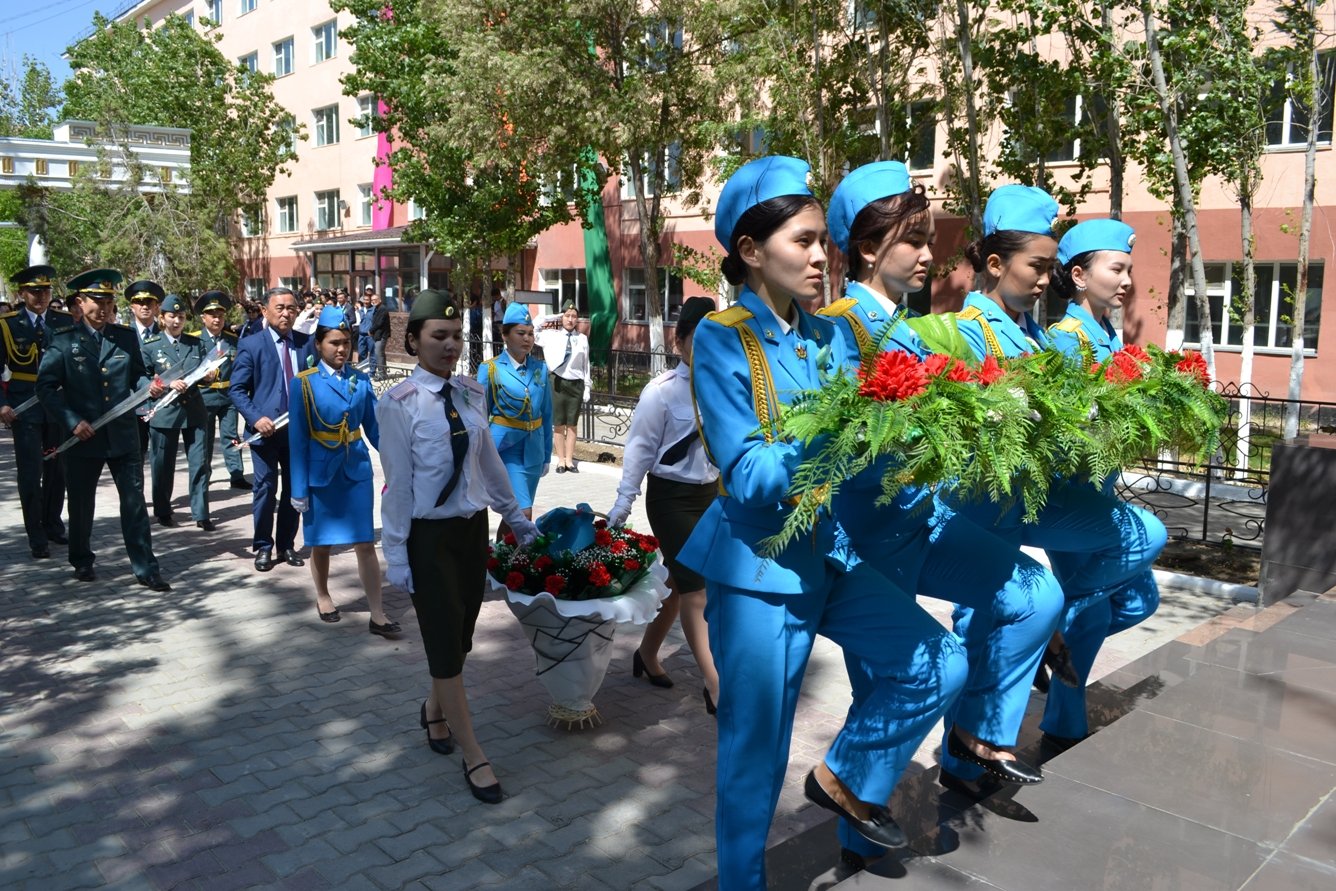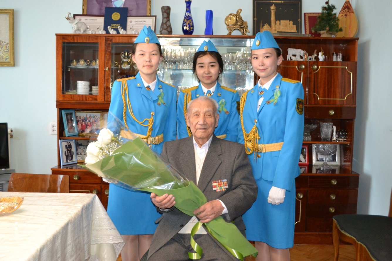Жиын барысында жас сарбаздықтар Ұлы Отан соғысы және еңбек ардагері, облыстың құрметті азаматы Бөрібай Құлманов ақсақалды Жеңіс мерекесінің 74 жылдығымен құттықтады. Жүз жасқа иек артқан қарт жауынгер де жастарға тілегін айтып, батасын берді.