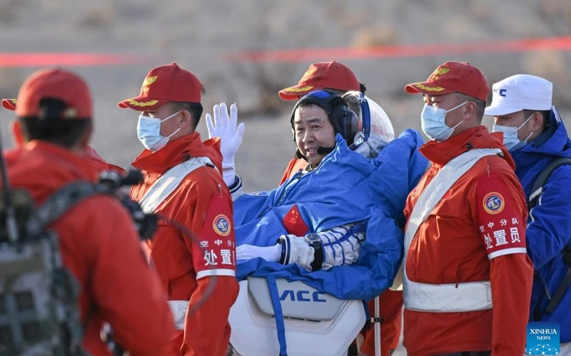 Жұма күні Бейжің уақытымен 17:21-де капсула Жерге қонғаннан кейін одан бірінші болып экипаж командирі Чэнь Дун шықты. Ол орбитададағы уақыты 400 күннен асқан тұңғыш қытайлық ғарышкер атанды.
