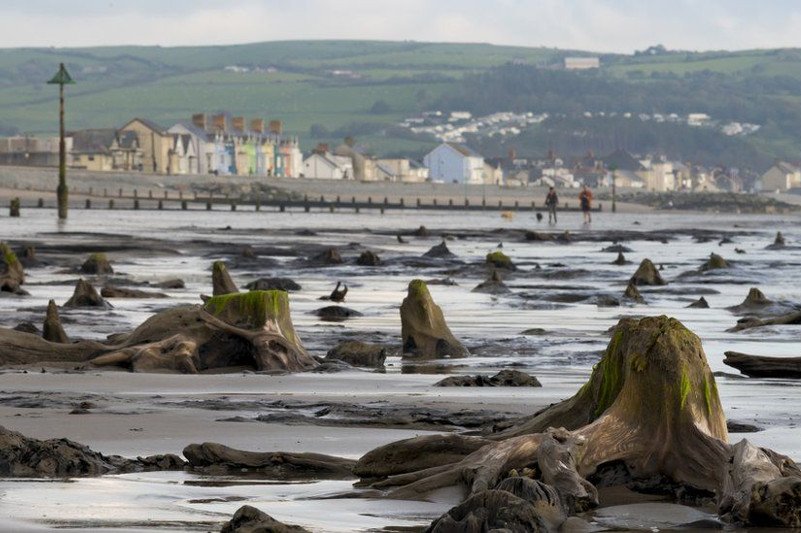 4,5 мың жыл бойы құм мен судың астында жатқан тарихқа дейінгі орман аяқ астынан Уэльсте болған дауылдың нәтижесінде ашылды, – деп хабарлайды bbc.com.Қатты желдің екпінімен теңіз тартылып, ағаштар жатқан шымтезек ашылды. Тас болып қатып қалғансан жүздеген ағаш діңдерін Кередигион графтығында Борт пен Инислас ауылдарының арасынан көруге болады. XVII ғасырда топан су басып қалған өркениет жайлы «Суға батқан жүздік» деп аталатын аңыз тараған. Бұл жер бұрынғы уақытта су тасқынынан бөгеттер мен шлюздардың көмегімен қорғалып, шұрайлы жері мен халқы бар аумақ болған деп есептеледі. Аңызда бұл жердің қатты дауыл болған кезде бірнеше рет су астында қалғаны айтылады. Біздің заманымыздың VI ғасырында 16 жергілікті ауыл суға батып, көптеген адамдар қаза тапқан.