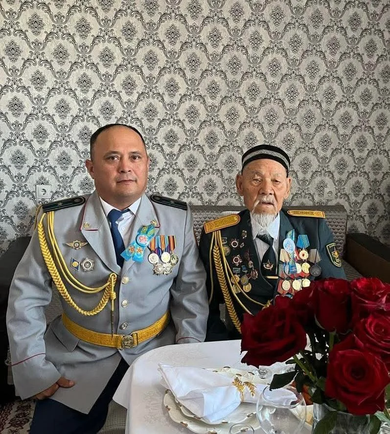 Ұлы Жеңістің 80 жылдығына орай ішкі істер органының ардагері Айдос Алматов ҰОС майдангері Яхия Тасыровты құттықтады.