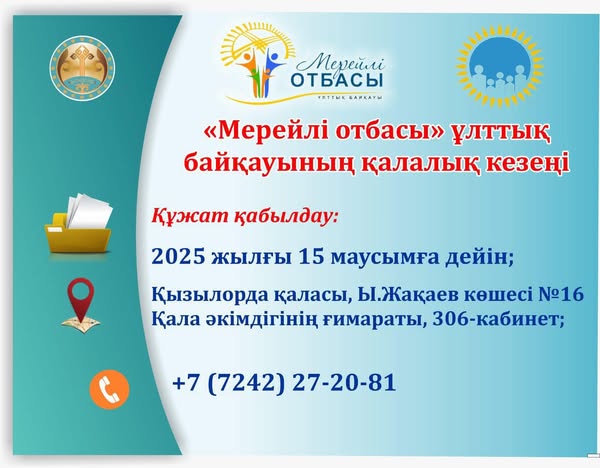 «Мерейлі отбасы – 2025» ұлттық конкурсының қалалық кезеңіне құжаттар 2025 жылдың 15 маусымына дейін ұзартылды.