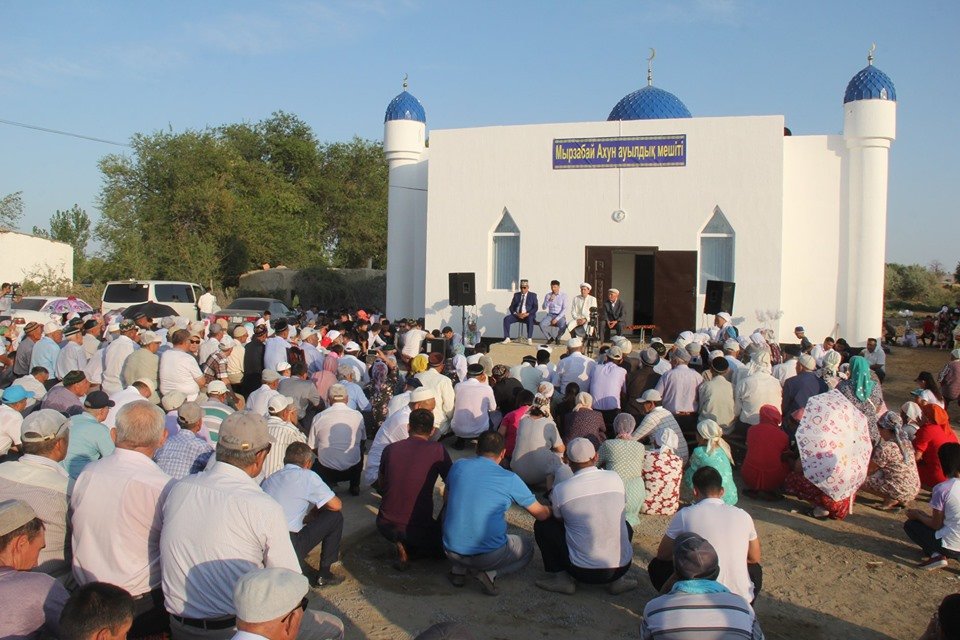 100 адамға арналған жаңа мешіттің лентасы салтанатты түрде қиылған соң, жиылған жамағат аср намазын оқып, еліміз үшін, дініміз үшін дұға жасады.