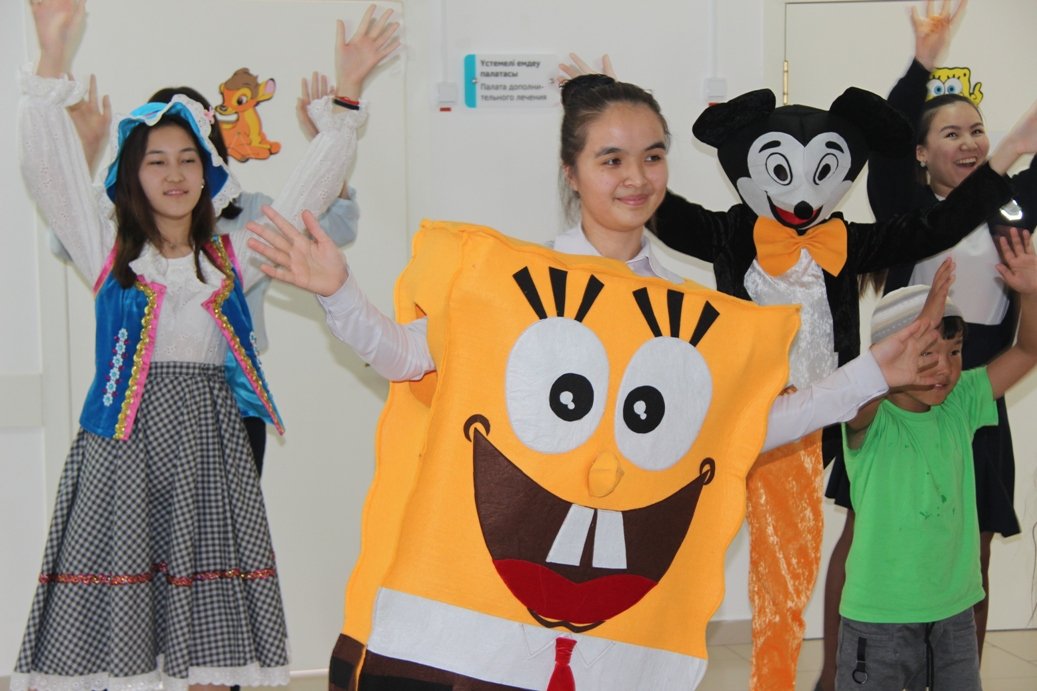 Қызылорда қаласындағы Назарбаев Зияткерлік мектебінің оқушылары апта сайын облыстық балалар ауруханасына барып, кішкентай ем алушыларға театрландырылған қойылым ұйымдастырады.Ежелден күлкі пайдалы, антикүйзеліс факторы мен жабығуға қарсы тиімді дәрі болып табылады. Ғалымдардың пайымдауынша, қуаныш, жайдарлық сияқты эмоциялар балалардың дертіне шипа береді.