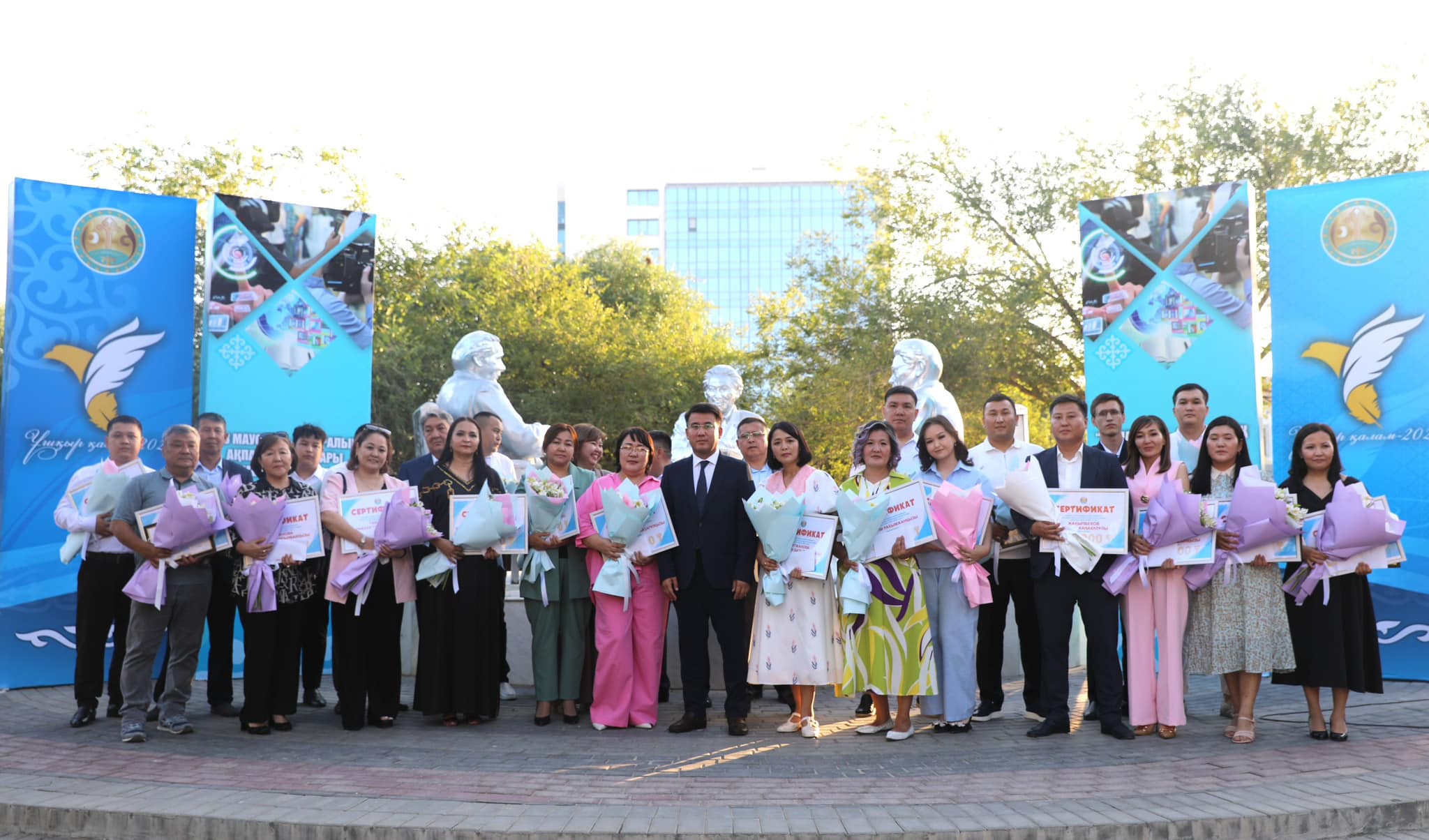 «Қаламгерлер» аллеясында бұқаралық ақпарат құралдары қызметкерлерінің мерейлі мерекесіне арналған салтанатты шара өтті. Оған қала әкімінің орынбасары Бақытжан Омаров, БАҚ саласы мен зиялы қауым өкілдері, жауапты сала мамандары қатысты.