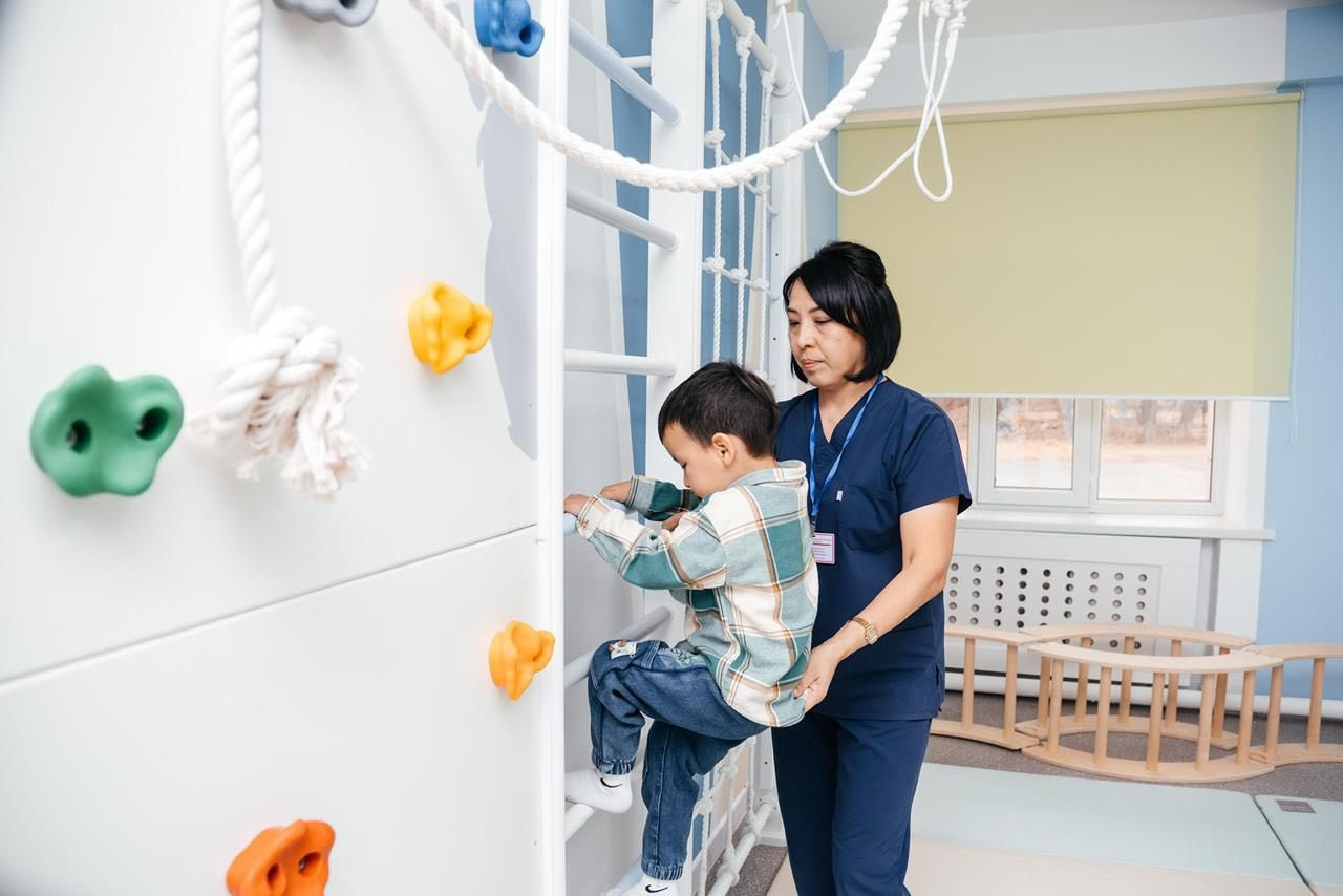 Айта кету керек, жаңа нысан «Самұрық-Қазына» және «Қазақстан халқына» қорларының қолдауымен әлемдік өндірушілердің заманауи оңалту құралдарымен жабдықталған. Мамандар вертикализатор, rifton тренажерлері мен модульдерін, реттеуші комплекттерді, «Атлант» костюмдерін, сенсорлық және шунгиттік бөлмелерді, тұзды шахта, иммерсионды ванна, сондай-ақ ЭЭГ, диагностикалық жүйелерді пайдаланады. Мұндай жабдық ерте оңалту бағдарламаларын сапалы жүргізуге және мүгедектік қаупін азайтуға мүмкіндік береді.