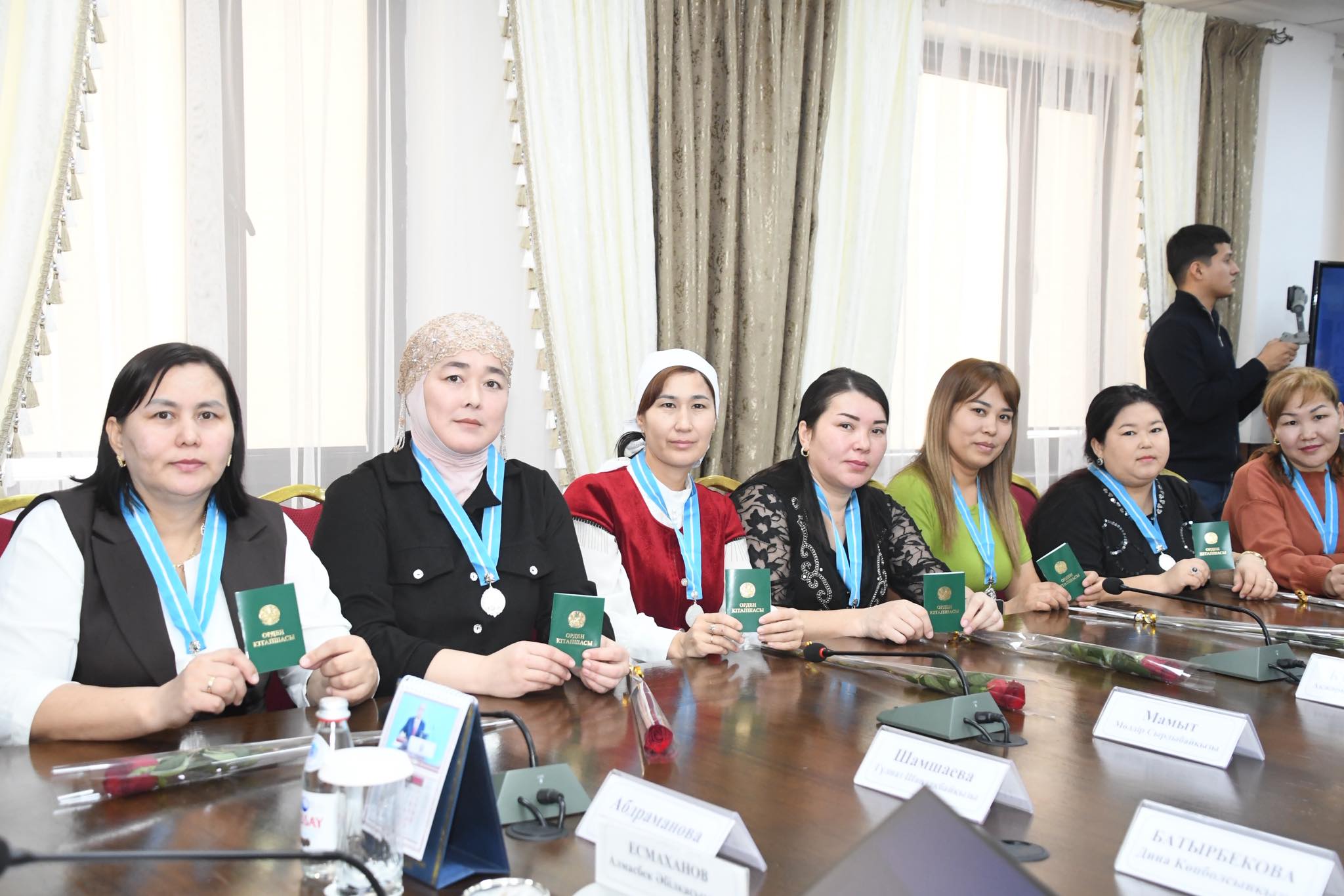 Бүгін аудан әкімі Алмасбек Есмаханов отбасы құндылықтарын дәріптеу, аяулы аналарға деген құрметті арттыру мақсатында көпбалалы аналармен арнайы кездесу өткізіп, Президент Жарлығына сәйкес «Алтын алқа» және «Күміс алқа» төсбелгілерін салтанатты түрде табыстады.