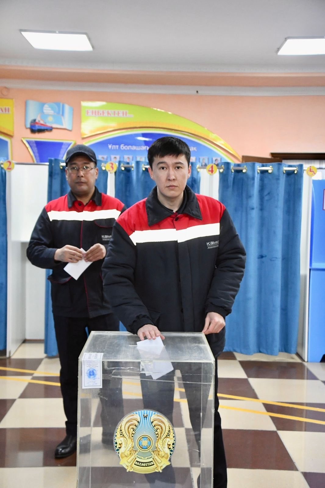 Таң азанмен туған жердің жарқын болашағы жолында өз дауыстарын беру үшін «Қамқор локомотив жөндеу зауытының» қызметкерлері ұжыммен бірге келіп, республикалық референдумға белсенді түрде қатысты.