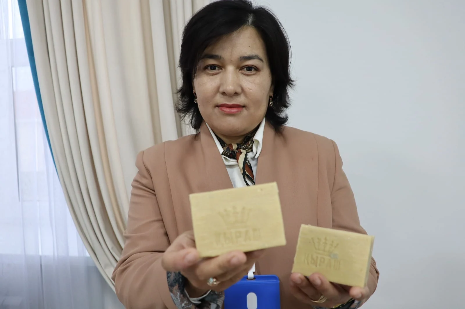 Күніне 200-ге жуық сабын өндіретін шағын цехта әзірге екі маман жұмыс жасайды. Өнім аудан орталығындағы сауда орындарына жөнелтіледі екен.