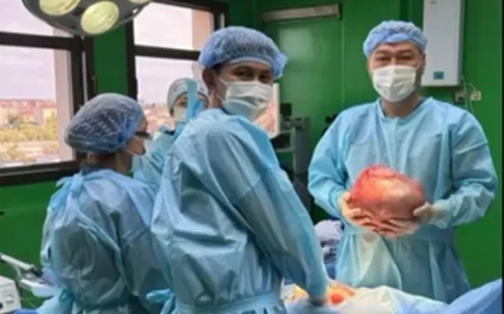 Дәрігерлер 72 жастағы әйелдің оң жақ аналық безінен салмағы 5 килограмм болатын ісікті алды.