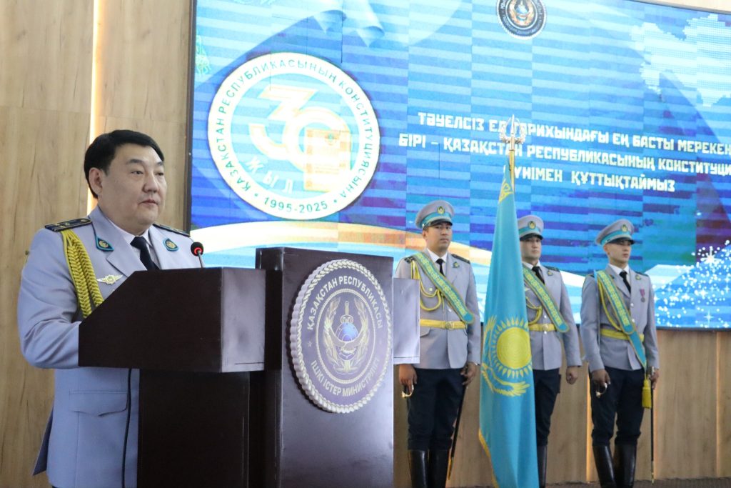 Конституция талаптары елдегі заң салаларының негізі, ал оның нормалары басқа заңдар үшін қағида болып есептеледі. Еліміздің заң нормаларының орындалуын қамтамасыз ету жолында еңбек етіп, ел тыныштығы мен тұрақтылығына өзіндік үлестерін қосып жүрген полицейлер Ата Заңымызды ұлықтауда.