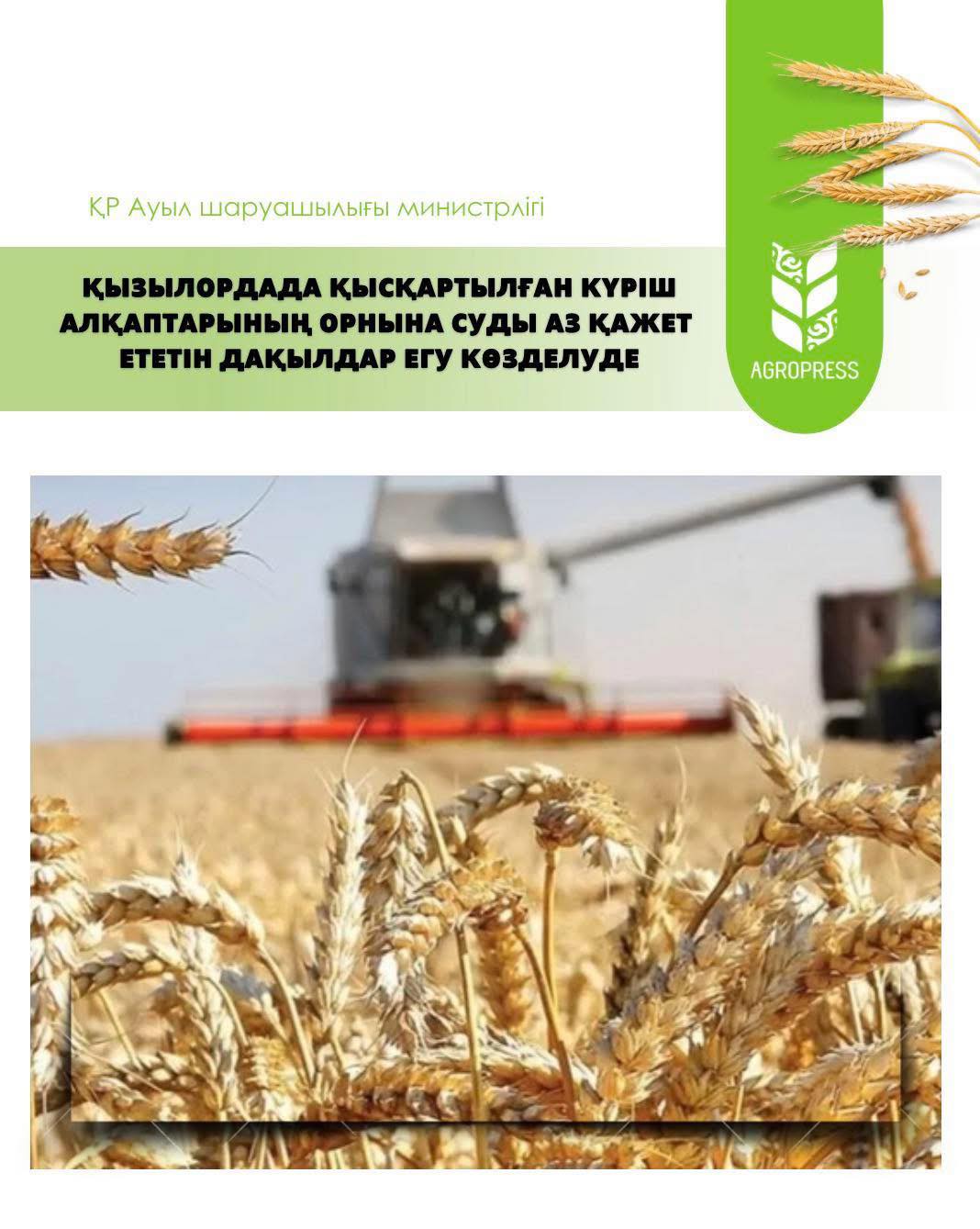 Қысқартылған күріштің орнына егісті әртараптандыру мақсатында суды аз қажет ететін дақылдар егу көзделуде. Бұл бағытта өңірімізде құны 40 млрд теңгеге жүгеріні терең өндеуге бағытталған «Қызылорда крахмал-сірне зауыты», құны 51 млрд теңгеге швейцариялық «Харвест Груп» компаниясының техникалық қарасора, жүгері, соя өсіру және оны өңдеу жобасы, су үнемдеу технологиясымен жүгері егу жобалары жүзеге асырылуда. Жобалар аясында биыл жүгері дақылын 10 мың гектарға орналастырып, алдағы уақытта да ұлғайту жоспарлануда, — деді өңір әкімі.